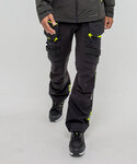 Hammer loop. Multiple side zip compartments. Reflective piping. Rule pocket. Triple-stitched seams. UPF 50+. Key loop in pocket . Side elastic waist. Top-loading knee pad pockets. Smart phone pocket. D-ring. Multiple storage pockets. 16-pockets. Bar tacked at all stress points. Two tier knee pad pockets. Back zip pocket. Adjustable leg length. HiVisTex™ Pro reflective tape. Reinforced panels. WRAP certified. Oeko-Tex certified. Reach certified. SEDEX certified.