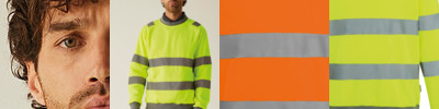 50% Polyester, 50% Recycled polyester. 100% Polyester brushed-back fleece fabric, 280gsm. Certified to EN ISO 20471:2013 A1:2016 Class 3. Orange colourway is also certified to RIS-3279-TOM. Ribbed collar, hem and cuffs. Crew neck. Contains recycled polyester.